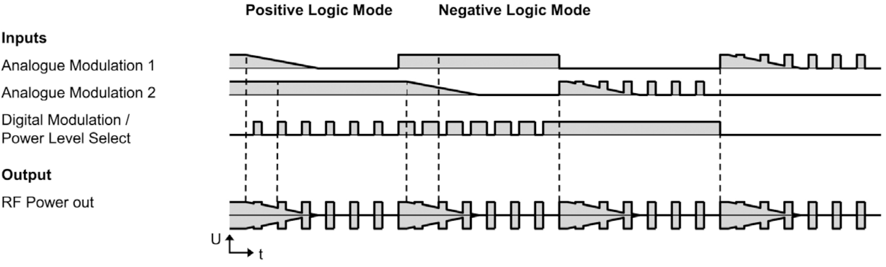 • 模式3:纯模拟模式、射频完全由ANALOG控制,ANALOG电压为射频包络线。