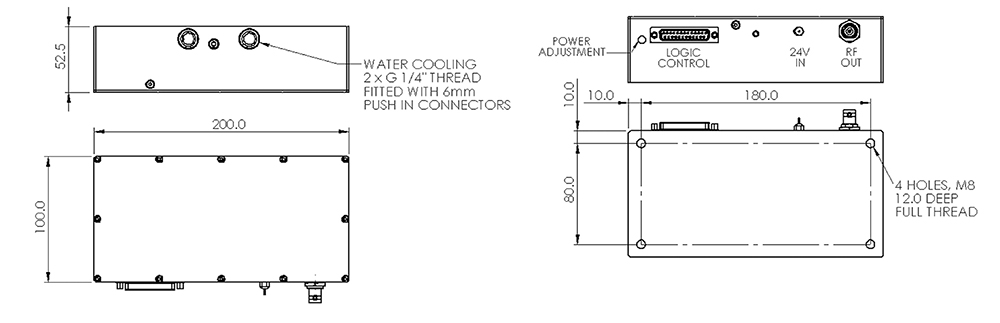 型号例子:SQDR041-20DC-FPS-15V,41MHz OEM型射频电源,输出20W,数字调制输入,带首脉冲抑止,要求输入直流电源15V。
