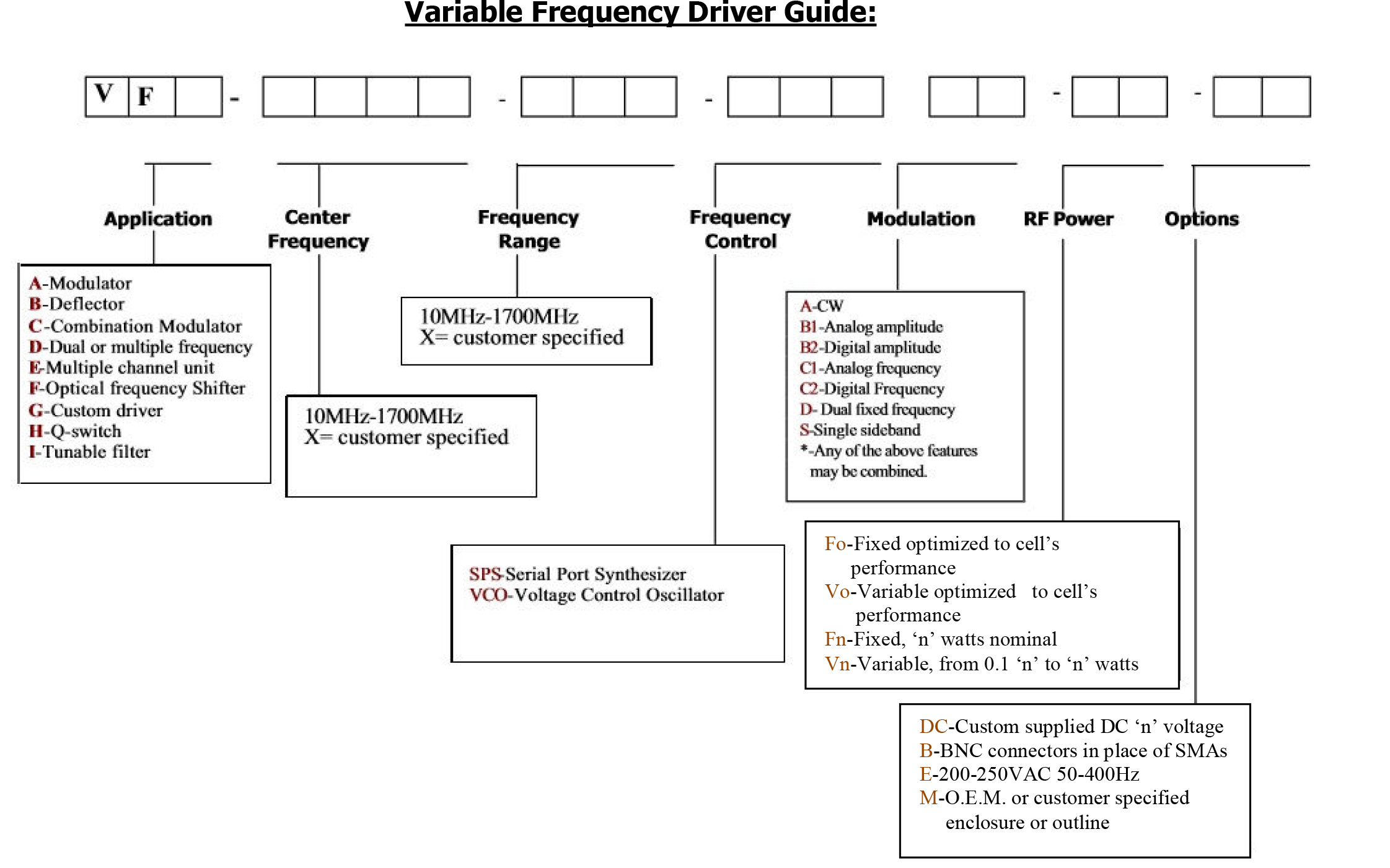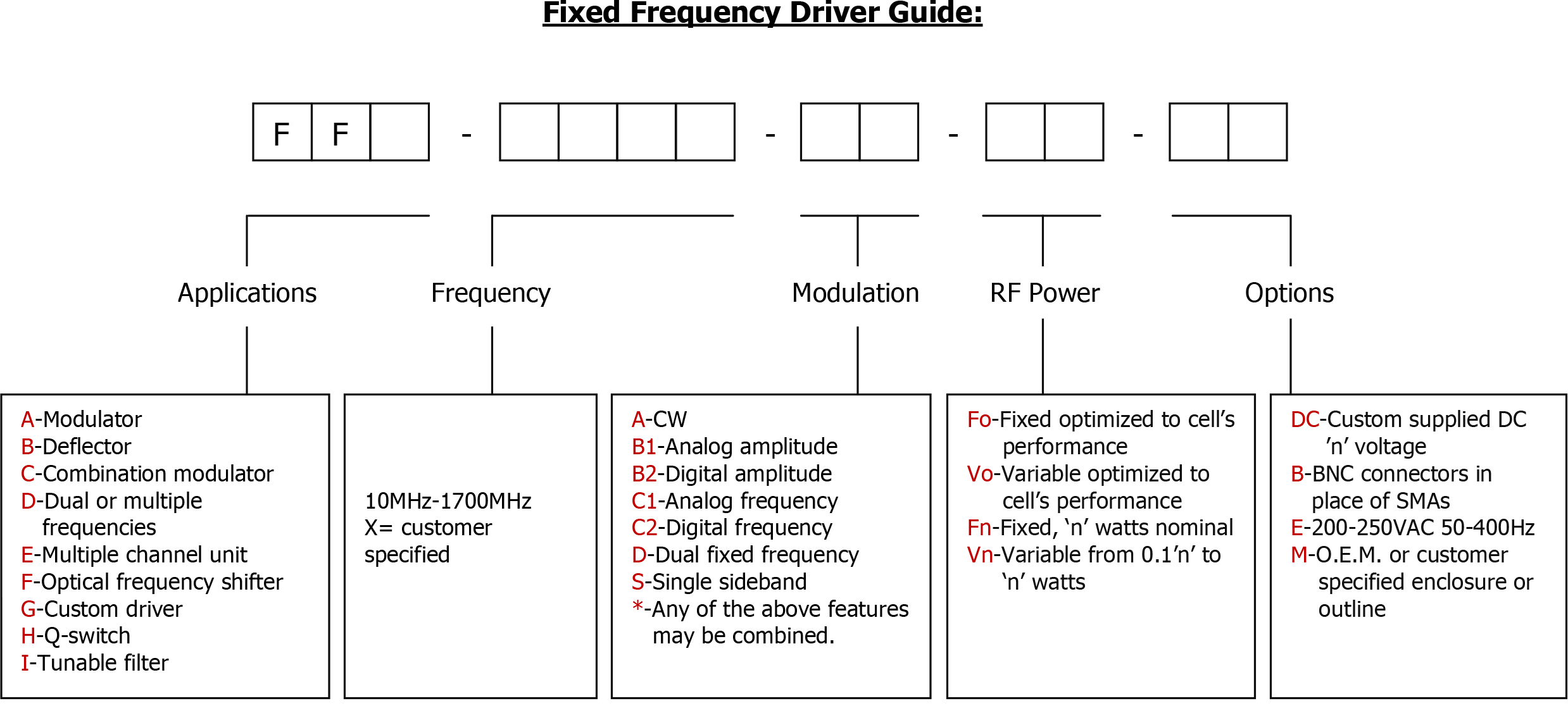 产品型号可兼容的声光器工作频率射频功率主要特点